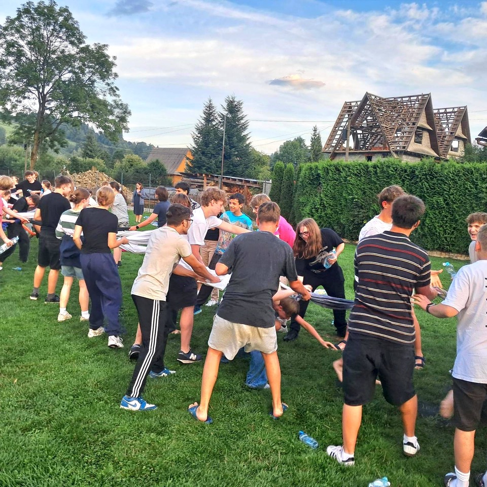 Byliśmy w malowniczym miejscu nad jeziorem Wilczyńskim, pośrodku pięknego i zacisznego lasu.Każdy dzień spędziliśmy bardzo aktywnie, dzieląc czas między kajaki, rowery, siatkówkę plażową, strzelanie z łuku i z wiatrówki czy wspinanie się na wieżę ze skrzynek. Pogoda sprzyjała nam przez cały pobyt, więc mogliśmy w pełni wykorzystać możliwości oferowane przez ośrodek w Mrówkach.Chociaż wdrożenie się w miejscowy dryl było dla nas pewnym wyzwaniem i dżingle regularnie wzywające na zbiórki zapadły nam głęboko w pamięć, wróciliśmy zintegrowani, bliżsi sobie nawzajem i chętni do wspólnej pracy